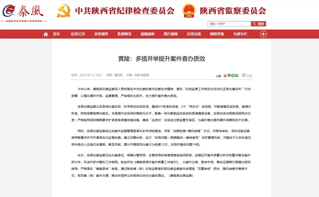 此外,该县纪委监委压实办案责任,明确分管领导、主管领导和审查调查组成员职责,定期召开案件质量分析会和重点复杂案件研讨会,形成齐抓共管的工作格局。制定印发《黄陵县提升案件质量工作指引》,从案件立卷、程序手续、事实证据等方面强化规范指导。严格落实“镇案县审”制度,通过联系镇(街)纪检监察室和县纪委监委案件审理室“双重审核”把关、随机抽查评查等方式,规范镇(街)案件办理,推动牢固树立依规依纪依法办案的理念。(黄陵县纪委监委)